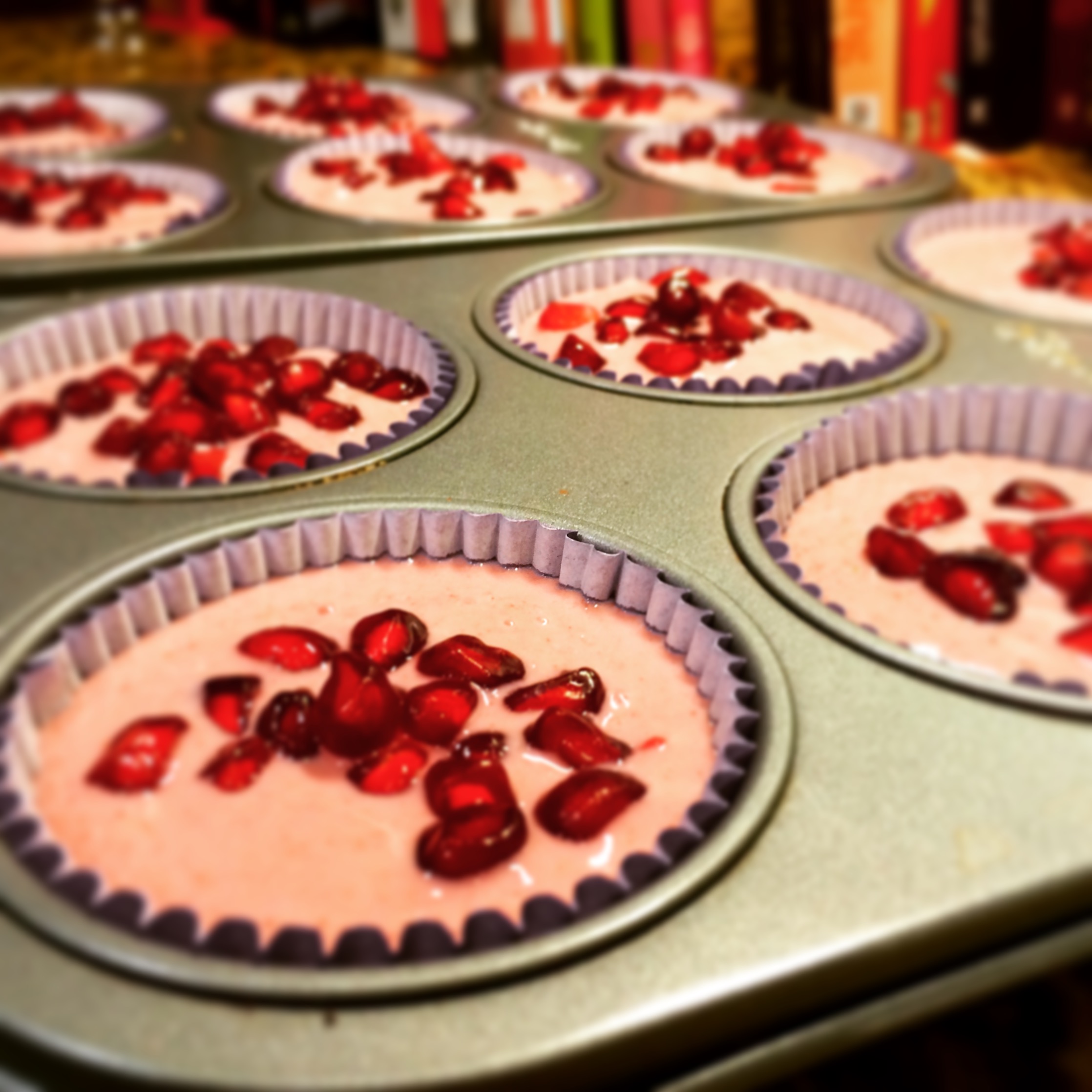 Pour the mixture into the muffin cases lined trays. Sprinkle a top with pomegranate seeds and deep-freeze overnight.